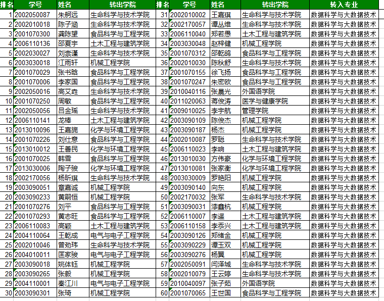 2021年太阳成tyc9728集团申请转数据科学与大数据技术专业拟录取名单公示