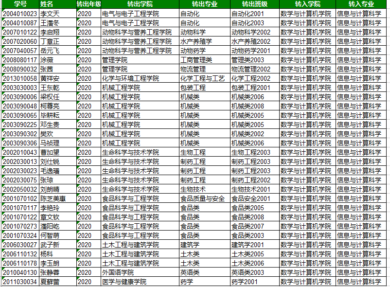 2021年太阳成tyc9728集团申请转信息与计算科学专业拟录取名单公示
