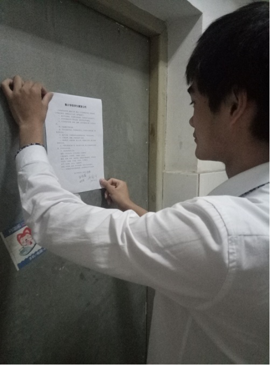 为贯彻落实校学工处大力开展“优良学风 从寝室开始”活动的要求,数计学院出台了专门的活动实施方案,在全院学生中开展了“优良学风 从寝室开始”学风建设主题活动。3月28日,数计学院大二学生在各寝室长和班长的组织下,率先签订了数计学院学生寝室公约。据悉,学院其他年级学生寝室公约也在陆续签订中。