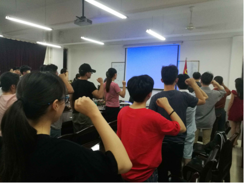 最后,在肖书记的带领下,所有的党员重温了入党誓词。会后各个年级在支部书记的带领下,对学生党员的发展材料进行了认真仔细的审查。