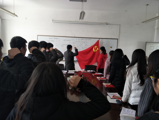 围绕“学习十九届三中全会精神,学习党章”的主题,各预备党员轮流诵读并学习了十九届三中全会公报以及人民日报的相关内容,并发表了自己的看法与感受。讨论结束后,祁老师带领全体成员重温了入党誓词,并对在座的全体预备党员提出了三点要求:一是要主动学习党的最新知识,用理论武装头脑,做好每次会前准备工作;二是要按时交纳党费;三是要在班级里发挥模范带头作用,树立楷模,积极主动为同学们服务。