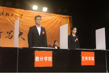 激烈的角逐后,只剩下数计学院与艺传学院的选手,台下的观众都紧张地屏住呼吸,默默的为他们的学院加油。