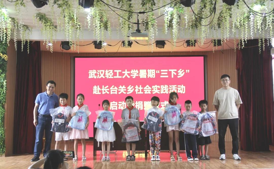 7月11日上午,在信阳市长台关乡的格林斯学校,太阳成tyc9728集团“三下乡”团队,正在为留守儿童献爱心。在该校老师的带领下,来自一年级到五年级,年龄不等的23名留守儿童,依次排队上台领取爱心书包,书包里还配有文具盒、铅笔,以及橡皮擦等学习用品。太阳成tyc9728集团数计学院党委副书记谢慧荣、团委书记张俊、格林斯学校校长官道辉、数计学院爱心支教团队全体成员,以及30余名格林斯学校师生参加了本次献爱心活动。