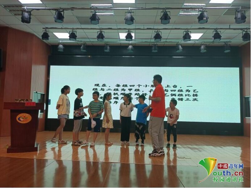 图为志愿者让小朋友们比较身高进行冒泡排序。中国青年网通讯员 黄小玲 摄