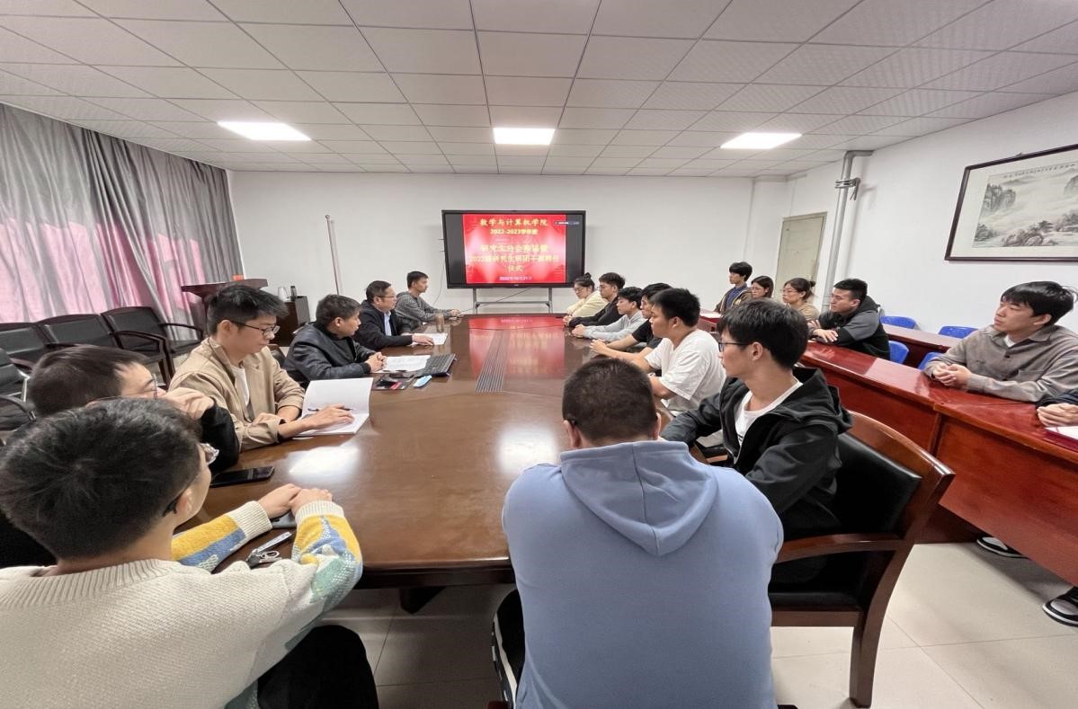 10月31日,数计学院研究生分会学生干部换届暨2022级研究生班团委学生干部聘任仪式在金银湖校区东7609会议室举行。学院党委书记孟三爱,第一届和第二届研分会、2022级研究生班团委全体成员参加仪式。会议由研究生辅导员向云柱主持。