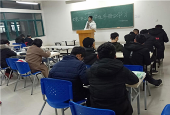 首先,吴老师组织18级各班班委进行了《学生手册》学习的专题会议,学习了包括学分绩点要求、学位授予要求、课程考核与成绩记载、综合素质拓展学分、考试违规处理办法等内容。会后,她要求各班开主题班会学习。其次,各班委在12月16日-12月19日认真召开班级会议,带领本班同学学习学生手册的具体内容。学习完学生手册后,很多同学表示这次学习极大地帮助他们了解作为一名大学生在学习上对自己应有的要求,同时他们也将借助这次的学习来更好地制定自己的大学生活规划。