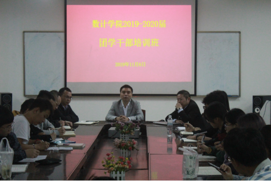 11月6日中午,数计学院2019-2020届团学干部培训班在我校金银湖校区东7-310教室举办,此次培训班面向学院团委、学生会全体成员,旨在提升学生干部的综合能力素质,培训班邀请校团委书记刘竞作为主讲嘉宾,院党委书记孟三爱主持,院党委副书记谢慧荣,院分团委书记张新娅出席。