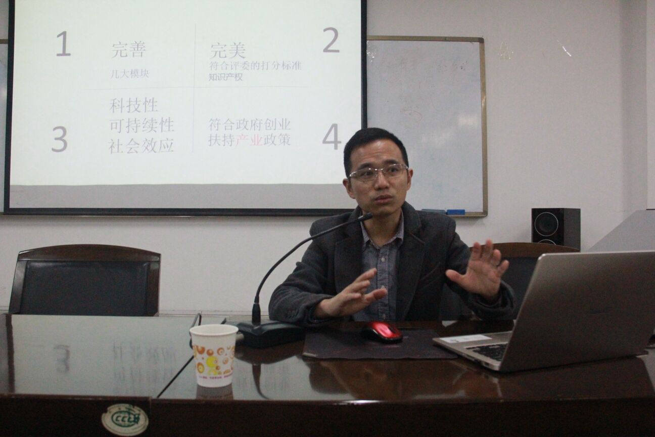 在讲座中,校友欧阳书伦向同学们分享了商业计划书的撰写技巧、政府的创业扶持政策,以及自己的创业经验等三个方面的“干货”。
