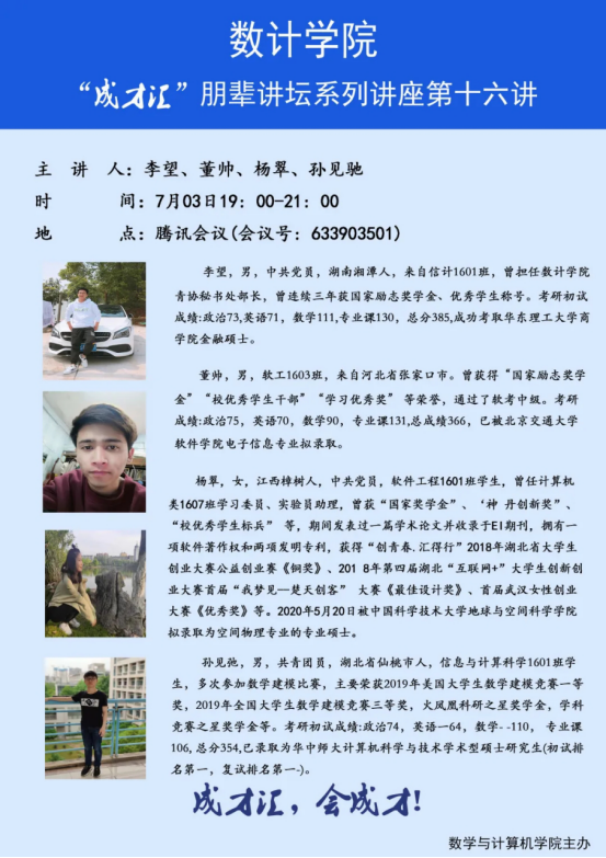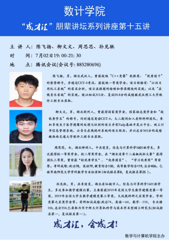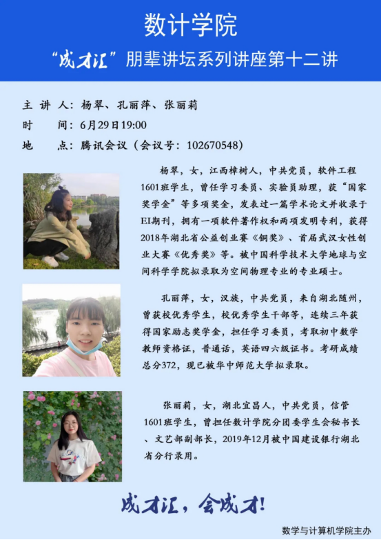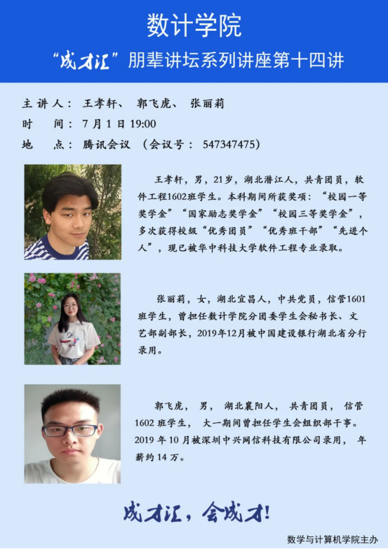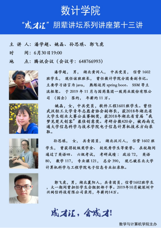 【讲座预告】数计学院“成才汇”朋辈讲坛第十二讲——第十六讲