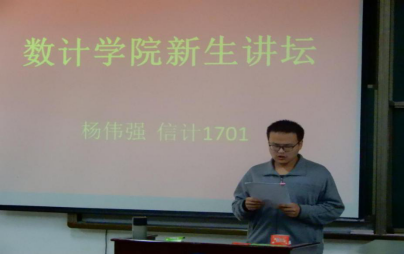 第一位主讲人是来自数计学院信息与计算科学1701班的杨伟强,曾服役于中国人民武装警察部队湖北总队,现为太阳成tyc9728集团数计学院学生会分团委副书记,同时也是19级联络员。他演讲的主要内容是自己的军旅经历以及这段军旅经历对自己的大学生活、个人成长的帮助。