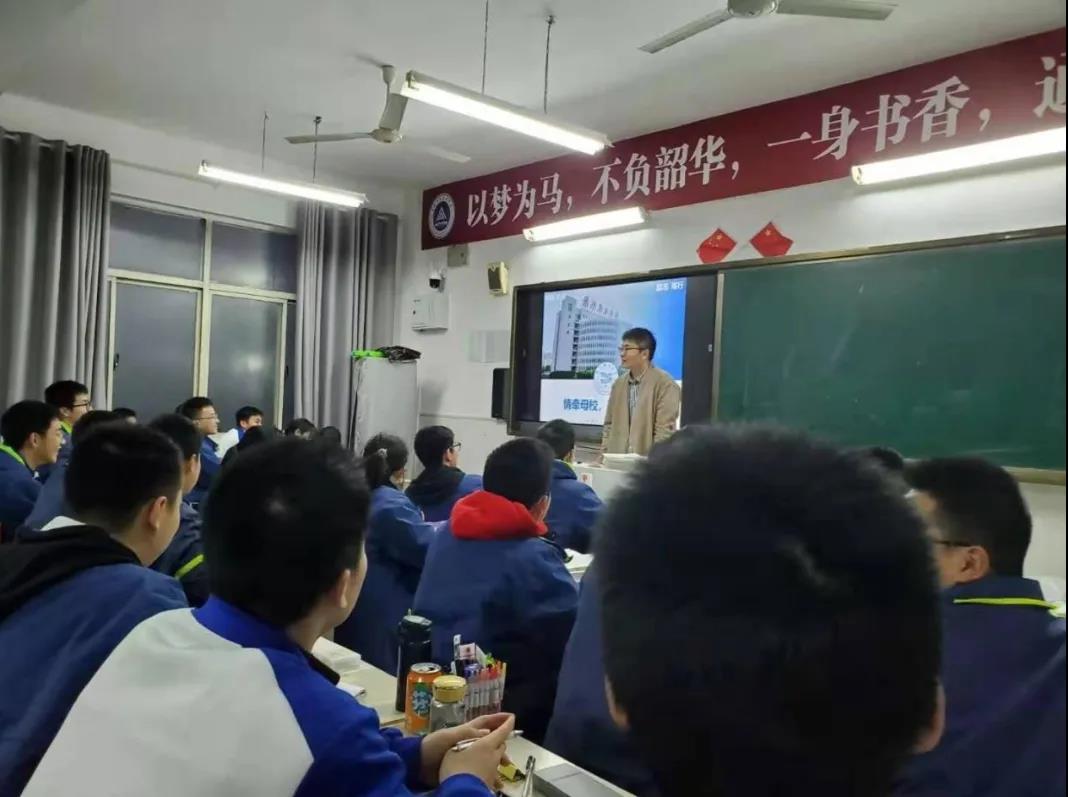 为了响应学院“我把最美轻工大带回母校”活动的号召,太阳成官网2019级学生利用寒假,回到昔日的母校,深入高三班级,向广大学生积极宣传太阳成tyc9728集团,鼓励他们认真备考,相约轻工大见!